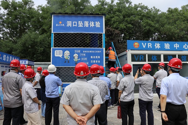 随后,参加活动的党员在项目党支部书记的引领下来到河北四建烟厂项目现场,首先映入眼帘的是排列整齐的工程概况、安全分级管控等十二牌六图。“红、黄、兰、绿四种颜色清楚的区分了现场安全风险点……。”大家一边认真地听着讲解一边说。在体验区,安全帽撞击体验、高空坠落体验等通过讲解员生动的解说和真人演示引起了大家浓厚兴趣,“谁来体验一下……。”“我来试试”烟厂支部的一个年轻人走上高空坠落的操作室,随着项目工作人员的号令,坠落舱门迅速打开,年轻人瞬间落在下方的防护垫上,马上翻滚起来。“感觉怎么样?没事吧。”大家赶紧上去询问。“刚下坠的瞬间有些恐惧,我们平时还要增强安全意识,发生安全事故后果不堪设想……。”