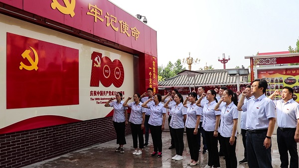 为纪念中国共产党建党100周年,继承和发扬党的光荣传统和优良作风,6月26日上午,三分亿百官网机关第一、第二党支部组织机关20余名党员干部赴正定塔元庄,开展“发挥支部堡垒作用 永葆党员先进本色”主题党日活动。本次活动主要分重温入党誓词、参观塔元庄同福乡村振兴六位一体展厅两个部分。