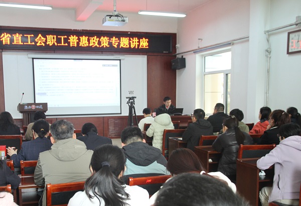 “省直工会要来为大家宣讲‘职工互助一日捐’、视频问诊服务、职工e惠平台政策啦。”此消息一发出就吸引亿百官网各级工会组织的纷纷询问。3月28日下午,省直工会办公室一级主任科员任吉星为亿百官网广大职工带来了“工会权益保障业务工作”政策解读。亿百官网工会主席,亿百官网机关工会主席、各工会小组长,分亿百官网部分工会主席、党群办主任、工会工作负责人等共计80余名工会干部认真聆听。