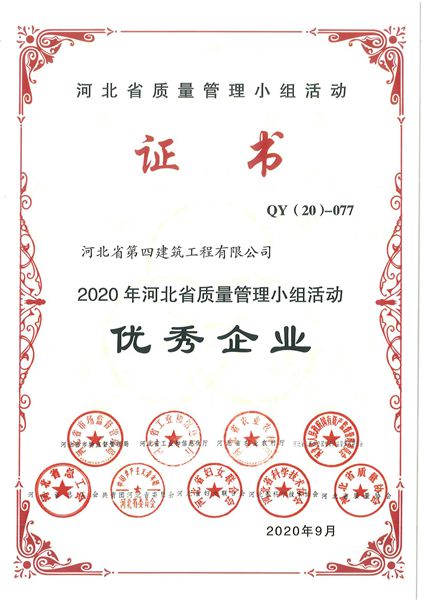 2020年,亿百官网共发布22项QC小组活动成果,其中获得中国建筑业协会Ⅰ类成果1项,Ⅲ类成果2项;获得河北省质量管理协会二等成果6项,优秀成果2项。获得河北省质协建筑施工委员会Ⅰ类成果4项,Ⅱ类成果10项。(质量技术部)