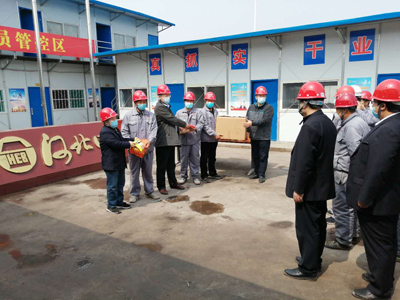4月2日,亿百官网党委副书记、副董事长、总经理唐志强,党委副书记、工会主席李怀生,副总经理刘金河与有关部门负责人一起,到北京分亿百官网山西亚鑫焦化项目部检查防疫和复工复产情况,慰问抗疫期间坚持施工的一线职工。