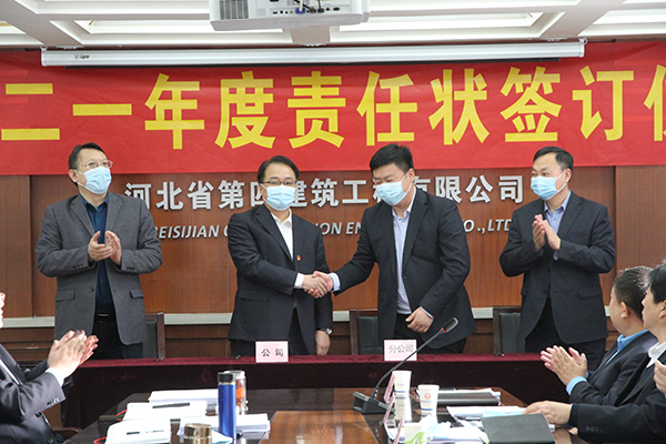 4月7日,亿百官网举行责任状签订仪式,与分亿百官网签订了2021年度经营管理责任书。2021年亿百官网的主要发展目标是,完成建安总产值120亿元;签约合同额确保140亿元、力争150亿元。各单位要以时不我待的使命感和紧迫感,坚持“控风险、上规模、提效益”的工作主基调,围绕责任书指标,在市场中开拓新机,在改革中挖掘潜能,创新管理,提高效益,为实现亿百官网高质量发展做出新的更大的贡献!(事业发展部)