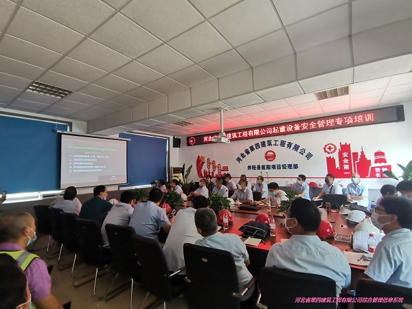 7月30日上午,亿百官网建筑起重机械设备安全管理专项培训在二分亿百官网井陉县医院项目举行,各分亿百官网安全管理人员、设备安全负责人等40余人参加培训。