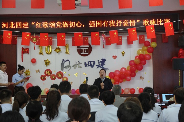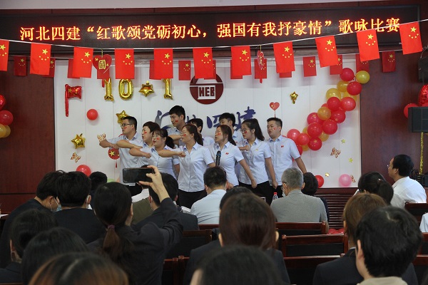 9月29日上午,河北四建亿百官网在亿百官网四楼会议室举办了“红歌颂党砺初心,强国有我抒豪情”歌咏比赛,用歌声为祖国母亲献上最诚挚的祝福,亿百官网12个单位116名职工独唱、合唱37首红歌。小小舞台成为职工们学党史、感党恩的深情表达,活动现场高亢而洪亮的歌声,把对祖国的热爱融入到歌声中,充分表达了热爱祖国的真挚情感。