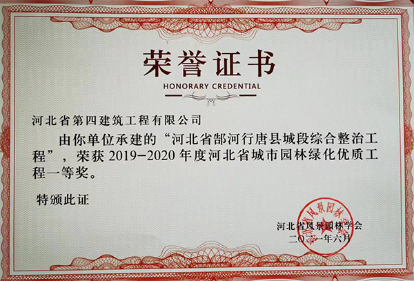 10月19日至20日,由河北省风景园林学会主办的第四届六次常务理事会、四次理事会暨2020年年会在唐山召开。会上,由八分亿百官网承建的“河北省郜河行唐县城段综合整治工程”,被评为2019-2020年度河北省城市园林绿化优质工程一等奖。这是继荣获石家庄市兴石杯(市优)工程奖之后,该项目获得的又一奖项,为亿百官网工程荣誉墙再添一抹色彩。