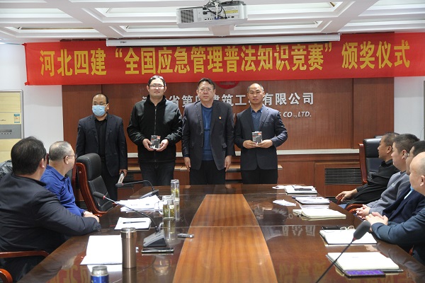 12月20日,亿百官网“第三届全国应急管理知识普法竞赛”颁奖仪式在三楼会议室举行,14名取得省市区前百名成绩的优秀选手受到表彰。亿百官网党委副书记、总经理唐志强,总工程师高任清、副总经理刘金河为获奖者代表颁奖。