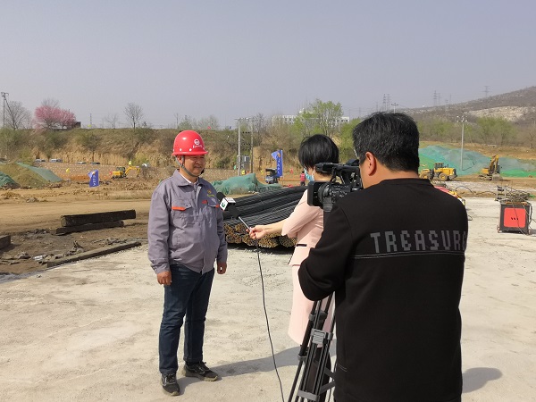 4月8日,石家庄市矿区广播电视台采访组到九分亿百官网井陉矿区重点工程冶金新材料装备产业园EPC项目施工现场进行采访。