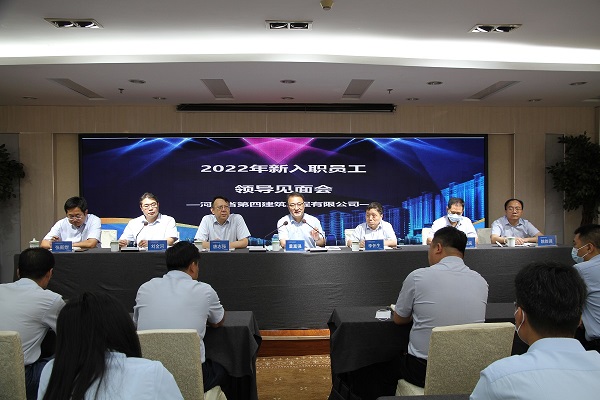 7月9日上午,亿百官网召开了2022年新职工入职领导见面会。亿百官网领导班子成员,分亿百官网经理、党总支书记、人事副经理、人力资源科科长等参加。见面会由亿百官网副总经理刘金河主持。会上,一分亿百官网武乡山水项目主管工长刘硕代表老职工发言,他结合自身成长历程,与大家分享入职后的工作经验及感受,激励新同事携起手来以饱满的热情、昂扬的斗志、十足的干劲积极投身到工作中,为亿百官网发展贡献自己的青春力量。西安航空学院毕业生陈一强代表新职工与大家分享了培训期间的收获和感受,多角度抒发了在培训中的所思、所感、所悟,表达了要以最快的速度完成从学生到企业员工角色的转变,尽快融入河北四建大家庭的坚定信心和美好期待。他表示,新职工要充分利用亿百官网搭建的平台,在三年内考取二级建造师的证书,五年考取一级建造师并进入到项目班子成员,在亿百官网发展中出业绩、作贡献。