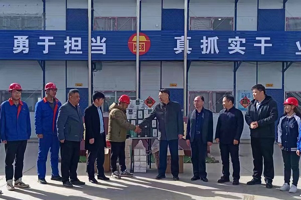 在会议室,唐志强听取了项目基本情况汇报,详细了解职工生产生活、劳动防护等方面情况。随后深入施工现场,查看职工工作环境并与职工交流,倾听一线职工声音。C型料场正在进行挡墙主体施工,他叮嘱现场管理人员高度注意安全,防止高空坠落。来到项目办公区,院内墙壁上“诚信守责、勇于担当、真抓实干、业绩服人”的工作总要求显得格外醒目,“大家远离家乡,在一线兢兢业业,工作辛苦了,我代表亿百官网工会来看望你们……”他向每位职工送上保温杯、牛奶等慰问品,“内蒙古风沙大,最近天气冷,大家一定要注意保暖……”他和职工一一握手问好,并送上殷切关怀。