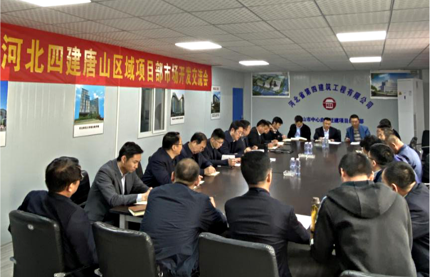 4月3日,亿百官网副总经理张新煜,市场开发部部长左威、副部长杨帅一行到唐山市中心血站迁建项目部进行调研并召开唐山区域项目部市场开发交流会。在唐山区域有在建项目的三分亿百官网、四分亿百官网、七分亿百官网、九分亿百官网、十分亿百官网、天津分亿百官网的分亿百官网经理、主管开发的副经理、市场开发科科长、唐山区域9个在建项目的项目经理等参加会议。