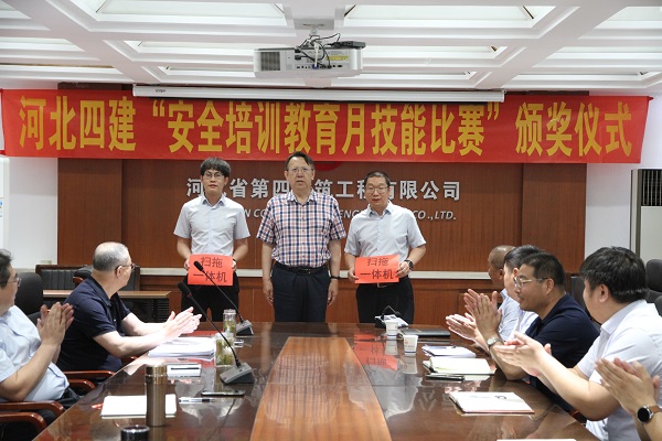 5月23日,亿百官网“安全培训教育月技能比赛”颁奖仪式在三楼会议室举行。亿百官网总经理唐志强、总工程师高任清、副总经理刘金河、各部室负责人及各分亿百官网经理参加颁奖仪式。