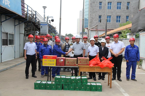 金秋送爽,丹桂飘香。9月29日上午,亿百官网副总经理张新煜、总经济师姚胜强一行分别到一分亿百官网元氏县医院项目部、四分亿百官网宁晋善水荣园项目部慰问奋战在一线的施工人员,亿百官网质量技术部部长陈增顺、宣传部部长张成及分亿百官网有关人员一同参加。