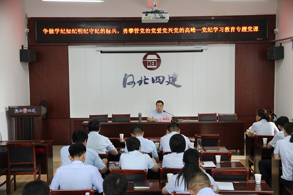 为庆祝中国共产党成立103周年,推动党纪学习教育走深走实,6月29日上午,亿百官网党委副书记、纪委书记、工会主席李怀生以“争做学纪知纪明纪守纪的标兵 勇攀管党治党爱党兴党的高峰”为题,在亿百官网四楼会议室为各分亿百官网党总支、直属党支部书记和党群办主任,以及亿百官网党群部门所有人员,讲授了一堂生动的党纪学习教育专题党课。