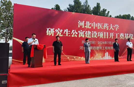 奠基仪式现场,挖掘机、装载机身披大红花整齐排列,犹如即将出征的战士,工人整装待发,信心满满、斗志昂扬。仪式在欢快激昂的乐曲声中拉开序幕。主持人首先介绍了参加本次仪式的相关领导和项目概况。随后,唐志强作为施工单位代表首先发言,“我亿百官网有幸承接该施工任务,充分体现了项目主管部门和建设单位对我们国有建筑企业的信任和支持。河北四建一定高标准、严要求,为项目顺利实施提供有力保证,为业主提供满意服务,为河北中医药大学医学教育的高质量发展贡献力量!”最后,学校党委副书记孙士江表示,河北中医药大学研究生公寓为省政府支持骨干大学建设项目,希望参建各方全力以赴确保按时完工投入使用,建设“品质工程”“一流工程”,促进学校各项事业取得新成就,为经济强省、美丽河北建设作出新的更大贡献!