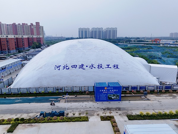 该项目基坑气膜长55米、宽60米、高20.5米,于2024年8月14日正式投产使用,具有安装简单、可循环利用、绿色环保及节能增效等显著特点,是分亿百官网大力推行绿色施工、文明施工、环保施工的一项重要举措。(四分亿百官网)