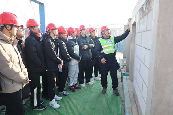 12月6日,七分亿百官网沧州市残疾人康复中心项目部迎来了一批特殊的客人——河北农业大学理工系主任周欣带领的工程管理系150余名师生,开展“带生访企寻岗”活动。亿百官网人力资源部部长李锋、分亿百官网党总支书记王保刚、副经理李植利一同参加。