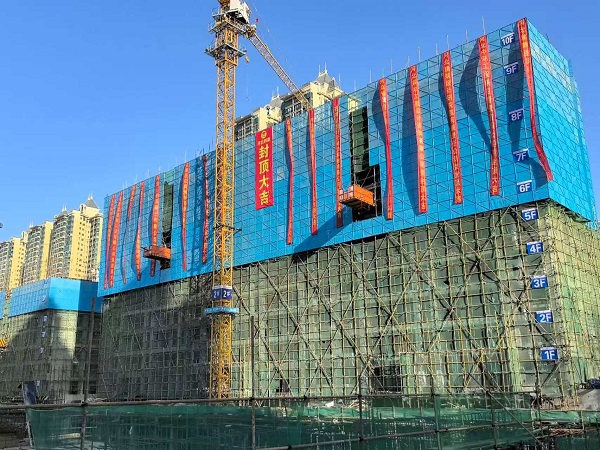 自项目启动以来,项目部始终坚持“高起点、高标准、高效率、高质量”原则,结合工期要求,细化分解施工任务,严格落实精细到日到时的施工进度计划。为加快进度,项目部高效利用人员、材料、机械设备,在合理搭配各工种作业的基础上,灵活调配钢筋工、木工等作业人员,实现了各工种交叉作业有条不紊。材料管理人员紧密结合现场实际,每日核查材料余量,及时完善采购计划,确保了所需钢筋、模板等建筑材料供应到位。同时,项目部通过塔机检测和吊钩可视化组合,在智能化管理平台实时查看回传画面,避免盲吊,提高了效率,动态调度26台塔吊。在全体建设者昼夜不停的努力下,用时94天完成D区2号楼地上主体结构,实现项目首栋回迁楼封顶。