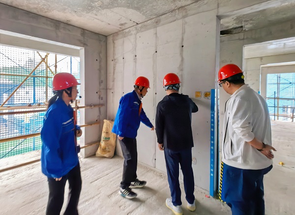 最后,观摩团一同走进D区8号楼,实地查看了一、二楼层的施工质量,如镜面般平整的墙面引起了众人关注。项目经理吕滚才随即介绍道:“我们采用了‘一板到顶’支模工艺,实现混凝土结构一次成型,相较于传统工艺,更好地确保了屋面美观性。”来自张家口市住建部门的一名观摩人员轻叩墙面称赞道:“这质感,一看就是‘正规军’的水平。”