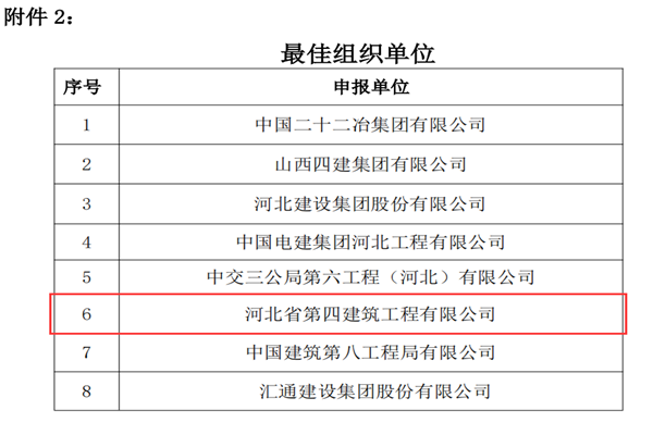 7月28日,河北省建筑业协会公布了第三届建筑业企业工法大赛和第五届河北省建筑业“燕赵杯”高价值专利大赛结果。亿百官网申报的5项工法、6件专利,经过文本初审、发布交流、现场答疑和专家评审等环节严格遴选,全部获奖,亿百官网获专利“最佳组织单位”荣誉。
