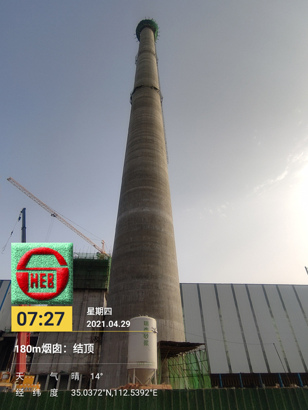4月29日,六分亿百官网河南金马项目部完成了关键施工节点——180m烟囱土建工程顺利结顶,刷新了河南省济源市最高建(构)筑物纪录。