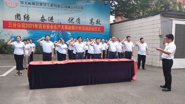 9月18日上午,三分亿百官网组织机关全体职工在分亿百官网院内举行了第十八次“百日安全生产无事故倒计时”活动启动仪式,分亿百官网经理李书伟带领职工进行安全宣誓,随后大家在印有“履职尽责,严细管控”活动主题的条幅上签名。各项目部也相继开展了倒计时活动启动仪式。