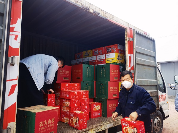 3月20日,了解到当地抗疫工作者吃饭不方便、部分社区消毒液供应紧张的情况时,分亿百官网书记立即安排项目人员紧急采购抗疫所需物资、联系运输车辆,迅速开展支援行动。经过一天的紧张准备,3月21日上午,满载方便面50件、八宝粥50件、矿泉水50件、84消毒液20件物资的车辆,从项目驻地驶往汊沽港镇人民政府。