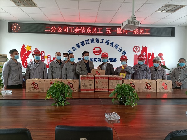 五一劳动节到来之际,二分亿百官网一直挂念着奋战在项目施工一线的职工。4月30日上午,分亿百官网工会主席孙立锋一行代表分亿百官网到石家庄井陉县医院项目,看望慰问项目职工,为奋战在施工一线的职工送上节日慰问品和祝福。